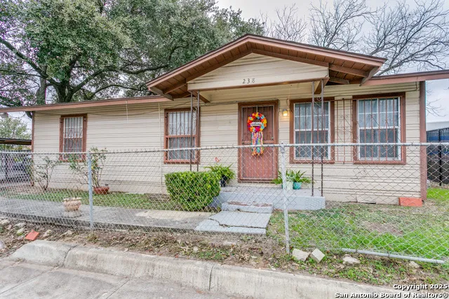 Situated near the vibrant Riverwalk, King William District, Southtown, Bluestar Arts, and Lonestar District, this home is a combination of historic and old world charm. 979 sq. ft with 2 beds, 2 baths, and 2 living areas with one easily used as a possible third bedroom or study. The kitchen comes equipped with gas cooking and ample countertops. Attached is a convenient dining area with sliding glass doors leading back patio. The open living space is attached to the dining room and is adorned with natural light from double windows. The hallway allows access to two designated bedrooms accented with natural wood flooring plus the versatile "flex" living area. The desirable oversized .1722 acre lot is fully fenced. In addition, find an outdoor storage shed/workshop equipped with electricity and ceiling fan. A two car+ carport provides shelter for vehicles. Fully fenced in separate area can be used as dog kennel. A LARGE covered back patio is ideal for outdoor gatherings and relaxation. This unique home is conveniently positioned with no adjoining neighbors and is ideal for buyers looking for a blend of downtown living and ageless appeal...it won't last long, schedule your showing today!"